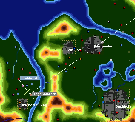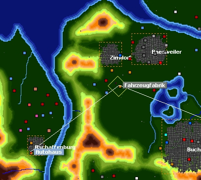 Mittlerweile habe ich das Gefühl, das es keine gute Idee war, mit so einer großen Karte ein neues Set auszuprobieren. Irgendwie kann ich mich nicht entscheiden wo ich anfangen soll. Habe mich zwar mit dem höchstmöglichen Startkapital ausgestattet und den Anfängermodus aktiviert, würde aber trotzdem mit einer kleinen Produktionslinie beginnen die zumindest wirtschaftlich ist. Zuerst dachte ich mit einer Verbindung von einer der vielen Kohlezechen zu einem Kohlekraftwerk, las dann aber den Hinweis das es da zwar viel Kohle aber kein Geld gebe. Außerdem braucht das Kraftwerk ein Abnehmer für den Strom damit es überhaupt Kohle verbraucht (glaube ich mich zumindest zu erinnern). Als nächstes viel mir der Große Getreidehof ins Auge, aber Windmühle und Bäckerei liegen viel zu weit auf der Karte auseinander so das mir die Anfangsinvestition für diese Produktkette zu hoch ist und ich lieber warten möchte bis ich sie an ein bestehendes Netz als zusätzliche Auslastung mit anschließen kann. Als vielversprechend sah ich als Ausgangspunkt für meine erste Produktkette ein Tagebauwerk, Stahlwerk, Autoteilefabrik, Fahrzeugfabrik so wie ein Autohaus die verhältnismäßig günstig beieinander liegen und so gute Voraussetzungen für den Anfang von einem Eisenbahnnetz sind. Bisher habe ich aber noch keine Möglichkeit gefunden wie die Autos von der Fahrzeugfabrik zum Autohaus transportiert werden sollen. Habe dafür schon mal Testweise ein Depot für Normalspur, Narrowgauge (fehlt da die Übersetzung?) und Straßenverkehr errichtet. Ich habe das Spiel mit Startjahr 1930 gestartet und in den Depots "alle Zeigen" und "auch veraltete Zeigen" ausgewählt. Bin jetzt etwas ratlos. Gibt es irgendwo eine Übersicht wo, wann, welche Transportmittel zu Verfügung stehen? Auch eine Übersicht welche Produktionsketten es gibt wäre für mich eine große Hilfe. Die Informationen im Wiki sind leider noch sehr spärlich und noch nicht auf die neue Version angepasst.