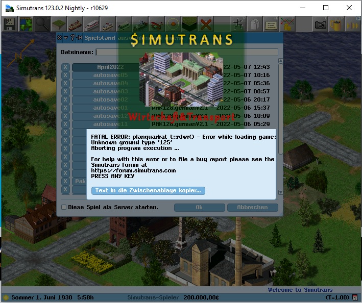 r10629 - Kryptische Fehlermeldung beim Laden eines Spielstandes - Druckversion +- Deutsches Simutransforum (https://simutrans-forum.de/mybb) +-- Forum: Simutrans (https://simutrans-forum.de/mybb/forumdisplay.php?fid=3) +--- Forum: Bugs und Probleme (https://simutrans-forum.de/mybb/forumdisplay.php?fid=11) +--- Thema: r10629 - Kryptische Fehlermeldung beim Laden eines Spielstandes (/showthread.php?tid=9587) |