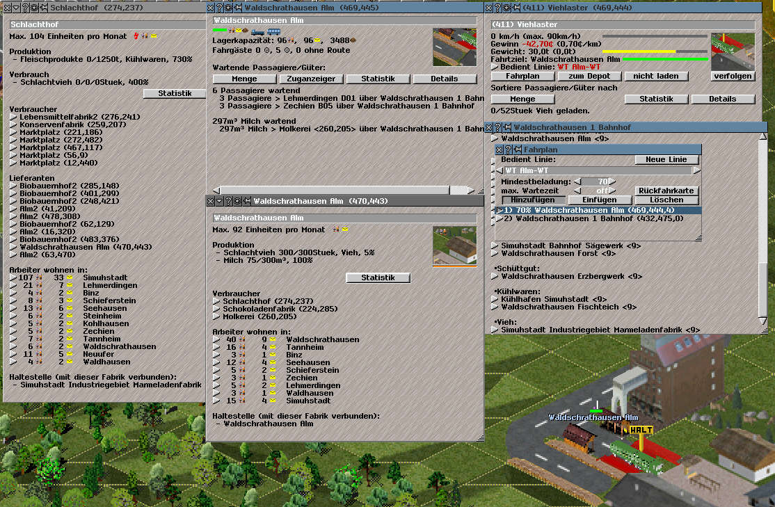 Denn im Screen ist zu erkennen, das der Schlachthof gar keine Kapazität für Schlachtvieh ( Anzeige Verbrauch 0/0/0 ) hat.