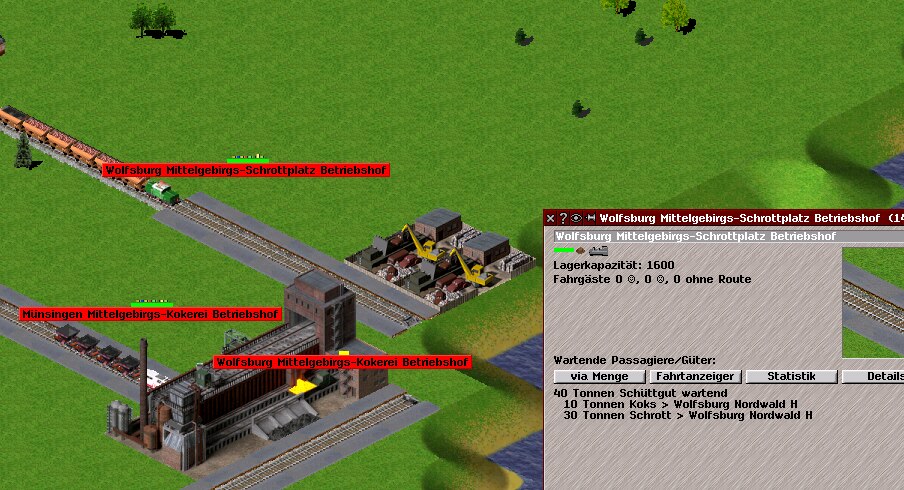 Hallo, warum wird im Betriebshof des Schrottplatzes neben dem Schrott auch der Koks der benachbarten Kokerei verladen, obwohl sie beide getrennte Verladestationen haben? Und nebenbei gefragt, warum haben die beiden Betriebshöfe der Kokerei verschiedene Ortsnamen (Münsingen, Wolfsburg)?