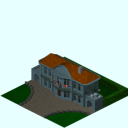 Wenn du das Haus in die Mitte der Kachel stellst, könntest du ein richtiges Anwesen daraus machen. Davor könnte eine "Auffahrt" für alte oder neue Kutschen und dahinter ein sehr gepflegter Garten im englischen Stil mit umgebender Mauer.