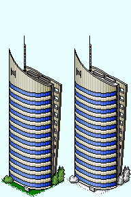 Ein Wolkenkratzer der jüngeren Generation. Gewagte Formen, leistungsstarke Klimaanlagen. Natürlich mit Öko-Siegel. Big Grin