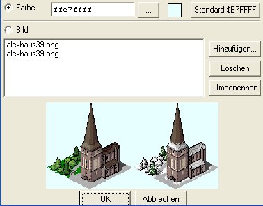 Im oberen Bereich kann eine bestimmte Farbe im Hintergrund verwendet werden. Simutrans benötigt aber zwingend die Farbe E7FFFF damit der Hintergrund durchsichtig angezeigt wird. - Die Hintergrundfarbe kann mit dieser Funktion repariert werden.