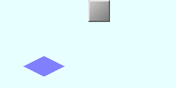 - Die (orthogonale) Ansicht hat nicht wie bei der isometrischen Ansicht die Winkel 120° bzw. 60° (dann müsste die Kamera an die Position x*(1,-1,1)). Ich setzte sie an die Stelle (10,-10,8.2) mit Scale=2.800 und TrackTo Constraint auf einen Empty an der Stelle (0,0,0). Die Kamara wird nun auf diesen Empty geparented. Danach wird der Empty auf die Stelle (0,0,0.810) verschoben. Die Grundkachel (wenn eine gezeichnet wird) muss nun an die Stelle (0,0,0). Sie hat die kantenlänge 2*2. Leider sieht diese ein wenig anders aus als sie sein sollte, da sie genau ein Pixel höher ist. Dies lässt sich meiner Meinung nach aber verschmerzen).