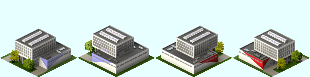 Wieder etwas moderner und "liebloser" ist die Computerfabrik (gerendert noch mit der "alten" neuen Engine, ich hatte die Exporte schon vor dem Engine-Wechsel angefertigt....) - dafür ein wenig geschärft...