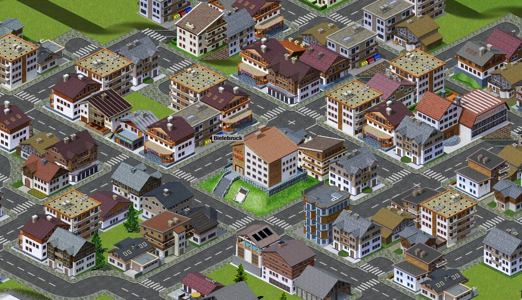 Bielebruck in der Alpinen Zone zeigt sich von vier Seiten - alle Gebäude haben vier Ansichten und tauchen ausschließlich in dieser Zone auf.