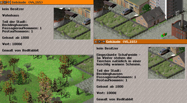 beim Spielen im Pak 128German breiten sich in den Städten unproportional oft grüne "Gebäude" aus. Beim näheren Hinschauen fiel mir auf, dass diese, obwohl optisch völlig identisch, unterschiedliche Bezeichnungen wie Haus, Schafweide und leeres Grundstück haben (siehe Grafik). Was hat es damit auf sich, und kann man die Pak-Dateien ohne Folgen aus dem Verzeichnis löschen?