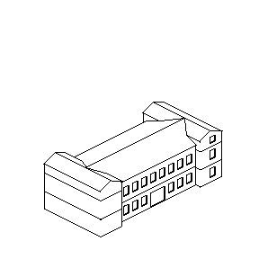 Ich habe dir Dachkonturen eingezeichnet und deinen Bauplan ein bisserl gedehnt. Es ist nicht so gut, wenn ein Gebäude direkt am Kachelrand steht, deshalb sollte es sich lieber über zwei Kacheln erstrecken und ein wenig Platz an den Seiten bieten - Grünflächen, Parkplätze, Wartebänke... wie auch immer.
