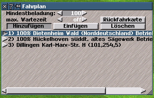 Setze einfach nur den Wald (100%), dann das Sägewerk (100%) und zum Schluß den Baumarkt in den Fahrplan. Dann funktioniert es problemlos.