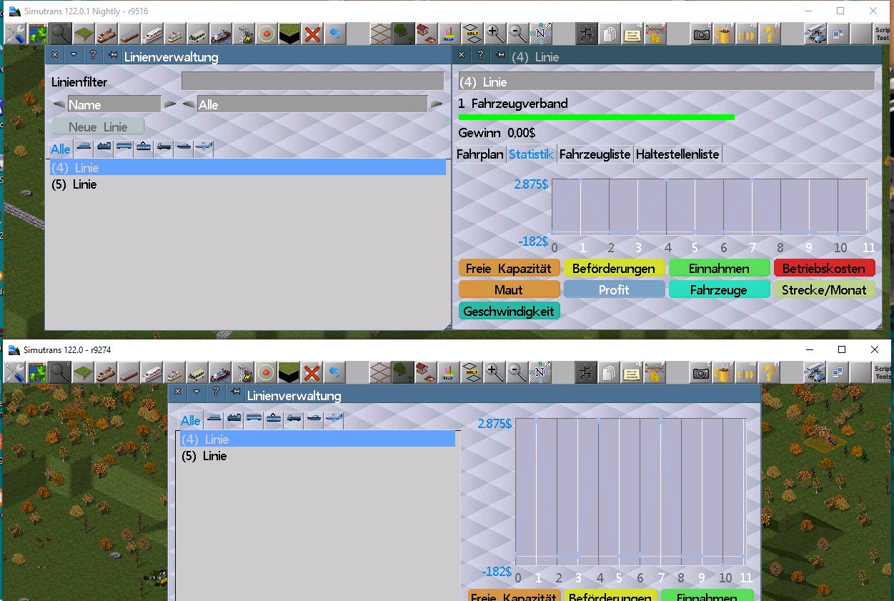 Was das Linienfenster angeht, so kann man endlich Linien vergleichen ....