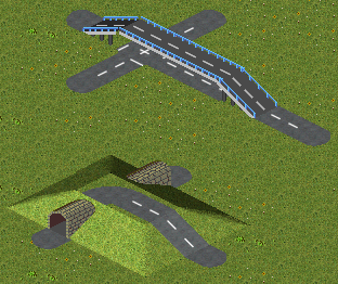 Eine unter einer Brücke entlanglaufende Straße kann direkt mit dem Brückensockel verbunden werden. -->Starßenkreuzung entsteht.