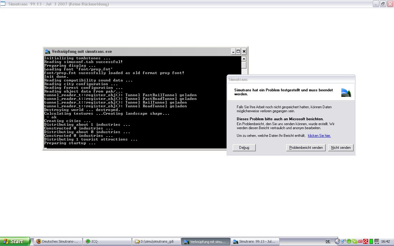 also Simutrans hat Probleme mit verschiedenen Auflösungen: Wenn ich das Spiel bei einer Auflösung von beispielsweise 1024x768 starte und anschließend die Auflösung verändere auf 1200x 800 (als beispiel) dann stürzt Simutrans ab wenn es maximiert wird.