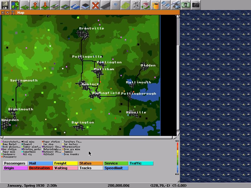 Zum Vergleich ein Screenshot aus 0.84.20. Dort waren fast alle Industriesorten auf der Karte. (Da die 0.84.20 die letzte war die ich veröffentlich habe bevor ich Pause machte, beziehen sich meine Vergleiche meist auf Erinnerungen aus dieser Zeit).