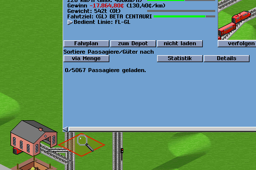 Fehler (möglichst genaue Beschreibung): Ich wollte einen Zug losschicken, Meldung "Blockstrecke belegt". Dann habe ich auf den vorbeifahrenden Zug gewartet und anschließend den Zug im Depot starten lassen. Er fuhr auch ganz normal los. Alles ist in Ordnung, er fährt wie gewünscht auf der Karte. Nur im Depot: Auf der Kachel, auf der das Depot steht, sieht man einen Zug, wie er dieselben "Bewegungen" vollführt wie der "richtige" Zug. Der Zug fährt praktisch auf den Schienen und im Depot. Ich habe einmal gespeichert und wollte das gespeicherte Spiel nun neu laden. Schwupps, Simutrans verabschiedet sich. Seltsamerweise lässt das Spiel sich nach Neustart problemlos laden. s. Bild.