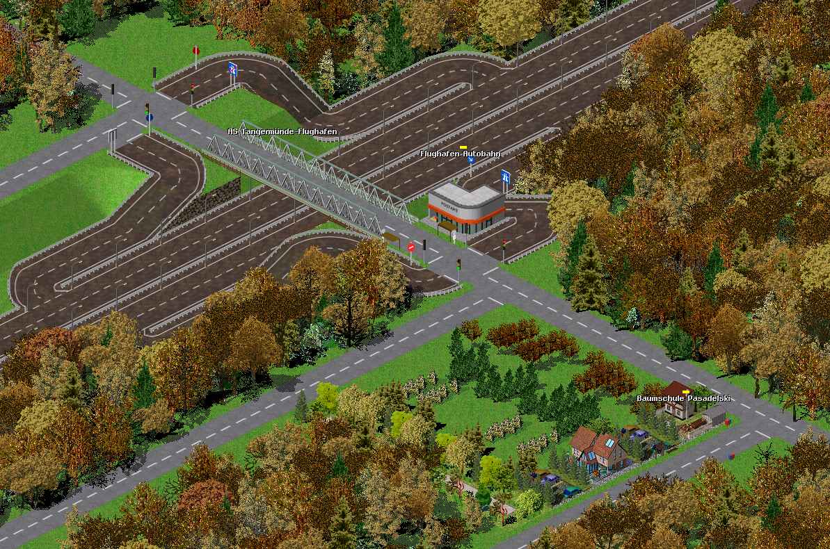 Ich hab mich mal mit der 130km/h-Schnellstraße aus dem pak128 an einer Autobahn versucht. Das Ergebnis sieht man im ersten Bild.