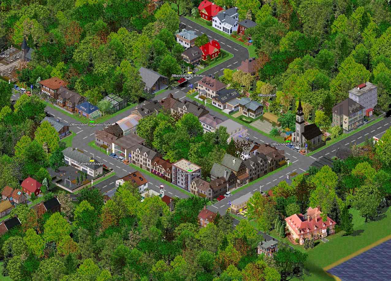 Hier haben wir zum Beispiel (immernoch von der "Riesenkarte", an der ich schon seit Monaten sitze) mal wieder eine mittlere Kleinstadt mit Bahnanschluss. Die neuen Häuser aus dem letzten Update sind ausgesprochen hübsch und vielseitig verwendbar, dafür nochmal ein herzliches Dankeschön!