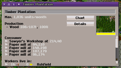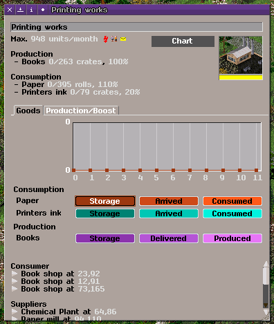 Ich habe das Fabrik-Info Fenster etwas überarbeitet. Zum einen habe ich versucht, mehr Informationen in der gleichen Fläche unterzubringen, zum anderen, das Fenster dennoch übersichtlich zu gestalten. Im Großen und Ganzen habe ich das Layout von Simutrans Standard belassen, und nur einige Details verändert.