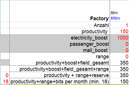 Ich habe mir die Tabelle mal angesehen, in den Zeilen 8,9 und 10 ist wohl der Wurm drin. Da gibt es nicht direkt nachvollziehbare Erhöhungen, und da steigen die Werte überproportional an. Was hast Du als field und reserve angesetzt? Alle Industrien reagieren in den Spalten 8,9 und 10 extrem mit Produktionserhöhung. In der Spalte 11 fehlen die Werte vom boost, bpm passt ja die gesamte Produktion an die Monatslänge an.