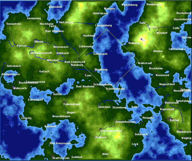 Ist nicht ganz so bergig wie die letzte - falls erwünscht können wri vor dem Start die Berge noch etwas erhöhen dafür gibt es diesmal Flüsse, die auf zu bergigen Karten nicht generiert werden