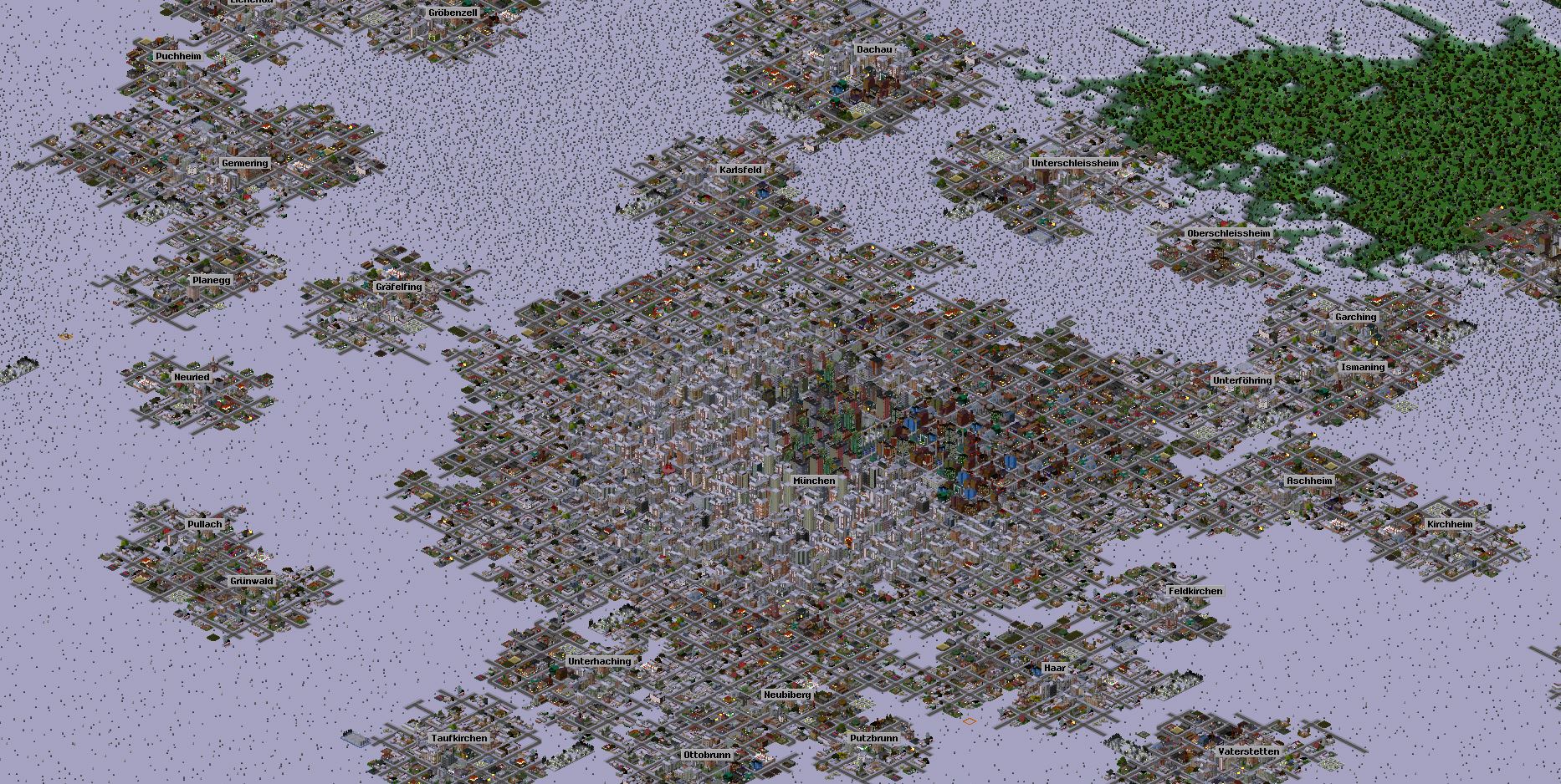 Der Großraum München - die grösste Stadt der Karte mit all ihren Satellitenstädten und Speckgürteln. Spielplatz für S- und U-Bahn-Fans