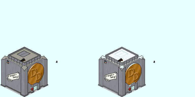 Ist 1x1, also Stadtgebäudefähig, wobei im Raum steht ob er nicht als Ende der Geldindustrie verwendet werden könnte (dann natürlich mit einem Hügel voller Fallen)