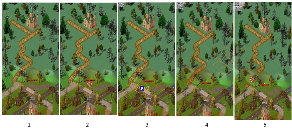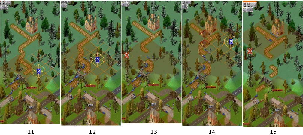 Da nun ein gerades Stück Weg entstanden ist, das an den letzten Parkplatz anschließt, können wir -Richtige Reihenfolge vorausgesetzt- jetzt beide Felder mit einem Parkplatz bebauen (Bild 11).