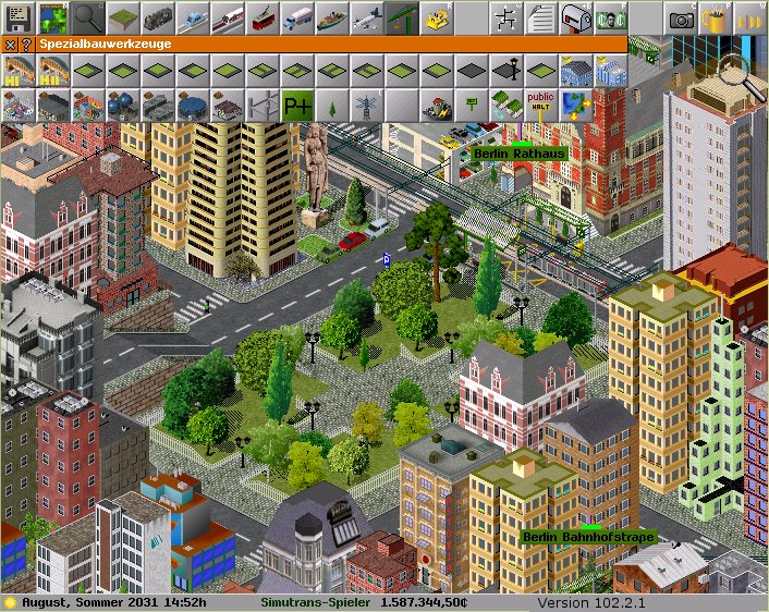 So, hab dann mal den Park bepflanzt. Das bringt frisches grün in die zugepflasterten Simutrans-Städte Wink