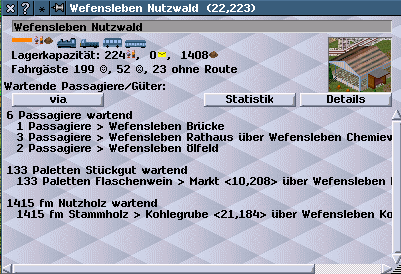 Das Problem ist nicht der Passagiertransport in Wefensleben Nutzwald, sondern die Fracht. Der Wald produziert deutlich mehr als abgeholt wird, da sind auch schnell mal die 1408 Lagerkapazität erreicht. Der andere Punkt ist die kombinierte Wein und Bücher Linie.