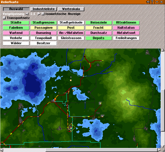 Also bis jetzt war es immer so nach dem Spielstart das ich auf die Reliefkarte ging und dann die einzelnen bunte Punkten anklickte und dann wurde mir mit weissen Linien gezeigt welches das nächste Verbrauchergebäude ist. Bsp: Forstwirtschaft angeklickt und dann werden mit weissen Linien die dazu passenenden Sägewerke angezeigt.