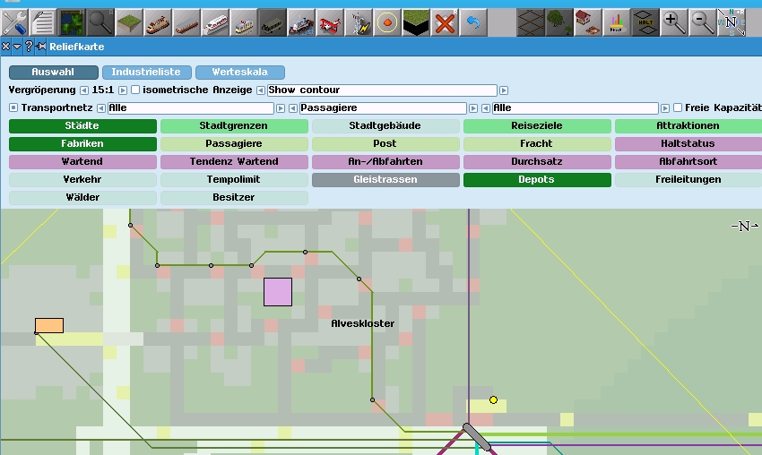 Wenn ich dann wieder den Button mit der Minimap anklicke wird mir wieder das Transportnetz eingeblendet und obwohl der Filter Passagiere gesetzt ist sämtliche Linien angezeigt.