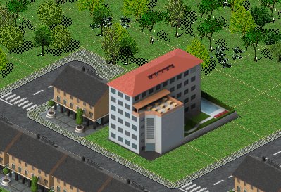 Zitat:Dein Hotel ragt über eine Kachel ( 128 mal 128 ) hinaus, womit wir zwangsläufig auf eine Kachelgröße von 128 mal 256, 256 mal 128 oder etwa 256 mal 256 kommen. Letzteres ist die Version, die für's Hotel gewählt wurde.