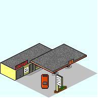 Sieht schön aus die Tankstelle. Aber ich finde, dass die Stützen für das Dach etwas kurz geraten sind, sie müssten weiter unten herausragen, oder? Und so eine große Preisanzeigetafel würde es auch besser als Tankstelle ausweisen!