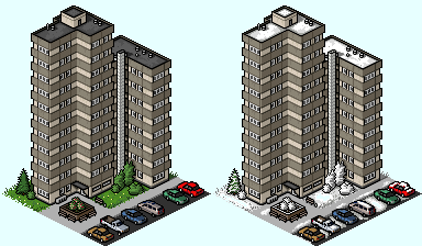 Die beiden Gebäude sind doch auf 2x2 Fliesen, demnach also keine normalen Stadtgebäude, oder?