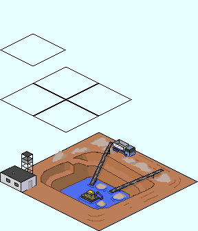 Oder evtl. was ganz anderes als eine Grube. Sand wird ja oft aus Baggerseen gewonnen. Da arbeiten dann Schwimmbagger. Nur so mal als Idee.