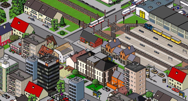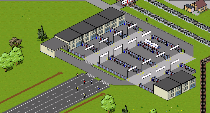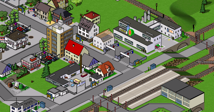 Eine Übersicht über das Eisenbahndepot im 96er Comic für die nächste Version. Wer findet bei der Menge der Fahrzeuge die Alten bzw. Neuen?
