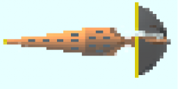Vielleicht noch eine kurze Erklärung der Änderungen, falls sie jemandem nicht direkt auffallen oder so: Ich hab das ganze um 4 Pixel dünner gestaltet, der Schirm wird nur noch durch eine dünne Verbindung mit dem Korpus verbunden und das Ganze läuft hinten weitaus spitzer zu. Außerdem habe ich auf der vorderen Hälfte ebenfalls Fenster eingefügt, auch wenn es jetzt vielleicht sogar ein bisschen zu viele sind. Die kleine Verdickung "innerhalb" des Schirms betrachte ich als Antriebsraum oder sowas.