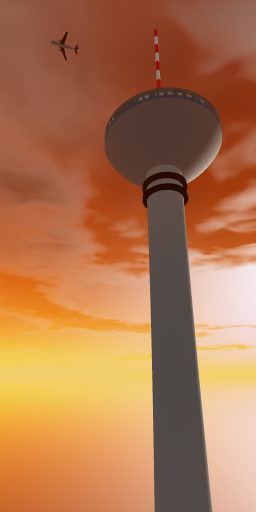 Ein "3d-Screenshot" des Fernsehturms. Wie man sieht, herrscht reger Flugverkehr. Wenn man doch nur die Perspektive ändern könnte...