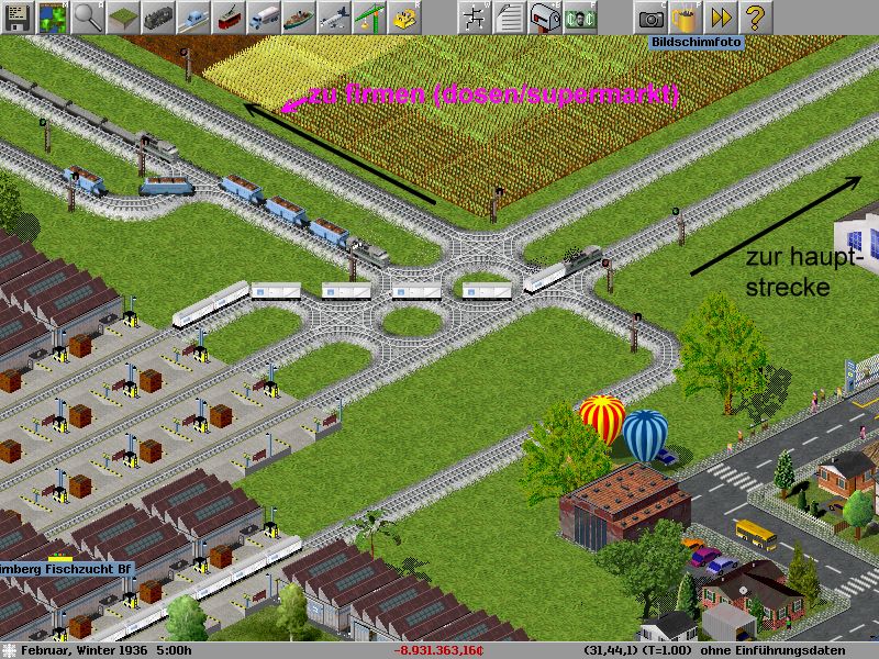 einen Geschwindigkeitszuwachs kannst du z.B. dadruch erreichen, dass du die strecke von den firmen zur hauptstrecke per brücke direkt anbindest... also mit dem gleisdreieck nicht den bahnhof zustellst