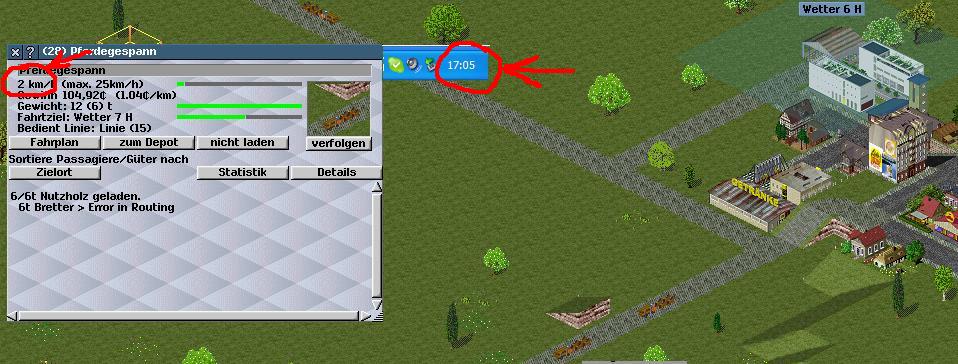 Fehler (möglichst genaue Beschreibung): Mein Pferdegespann als "Stückgut-Transporter" wurde beladen und fährt dann auf ebener Strecke ganze 2 km/h !?!?!?!?