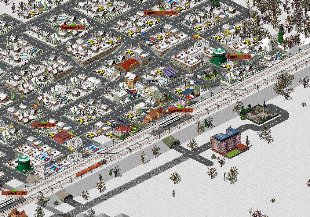 Der größte Bahnhof im Spiel. Hier fährt beinahe alles: Post-LKW, S-Bahn, Regionalbahn, Interregio (düfte bald durch den ICE 1 abgelöst werden), Güterzüge.