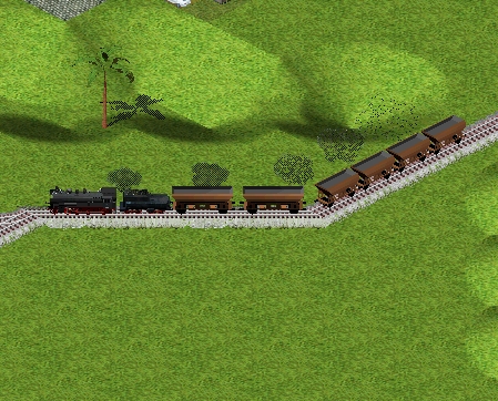 Ich habe mal die BR84, BR38 mit Wannentender und einen Erzwagen von MHz gerendet und im Pak128 ausprobiert ( deshalb stimmen die Gleise nicht ganz ).