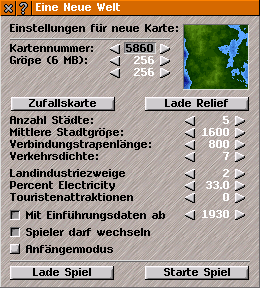 Bei Spielstart sieht es genauso aus. Unter Klimazonen verstehe ich, dass es im Norden kälter ist als im Süden. Das Spiel meint aber eigentlich Höhenzonen, wie Frank weiter oben schon sagte. Und was sich jemand unter Stadtgeschäften oder Landindustrien vorstellen soll, der noch nie mit Simutrans gespielt hat?? Das muss man doch erst einmal ausprobieren. Und daher begrüße ich den Vorschlag von Hajo. Grundeinstellungen, die spielbar sind und alle Vorzüge von Simutrans zeigen.