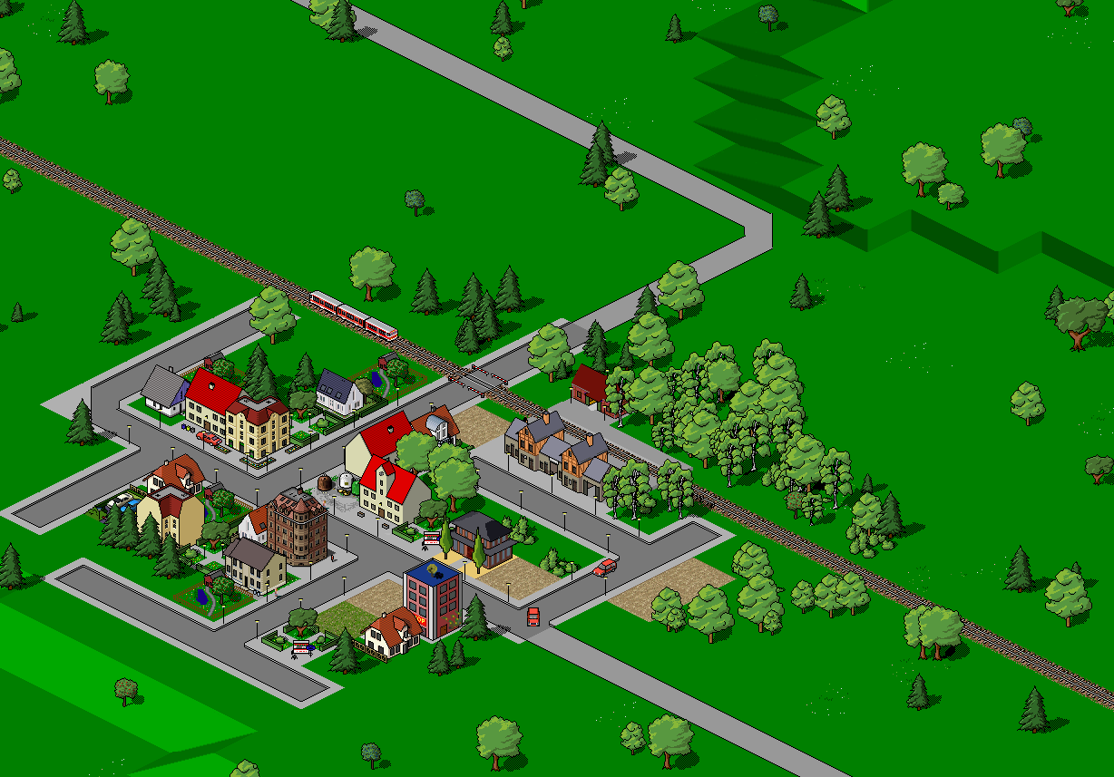 Zwei Städte sind zusammen gewachsen. Dabei hat sich eine Citylage mit großen Gebäuden gebildet und eine eher ruhige Vorstadt mit kleinen Häusern, Wiesen, Gärten und Ackerflächen.