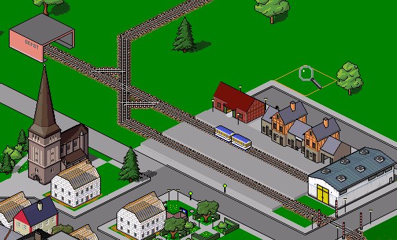 Eine mittelstädtische Stadt mit Straßenbahn und tiefergelegter Nebenbahntrasse. Smile