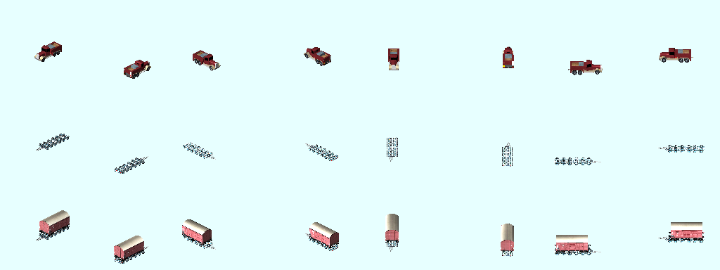 nicht schlecht für den Anfang. Für pak128.german sind die Fahrzeuge allerdings zu klein. Wir werden größere Modelle einsetzen, Du könntest Dich an den Lastwagen orientieren (schau mal ins Depot), die Größen in Pixel kann ich Dir noch gar nicht sagen, eine endgültige Festlegung ist noch nicht erfolgt.