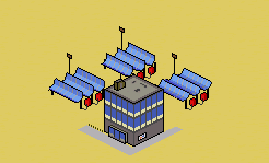 Ein Wohngebiet mit vielen Wohnung. Ein Kaufhaus (ganz links am Rand) versorgt die vielen Einwohner mit den Dingen des täglichen Lebens.