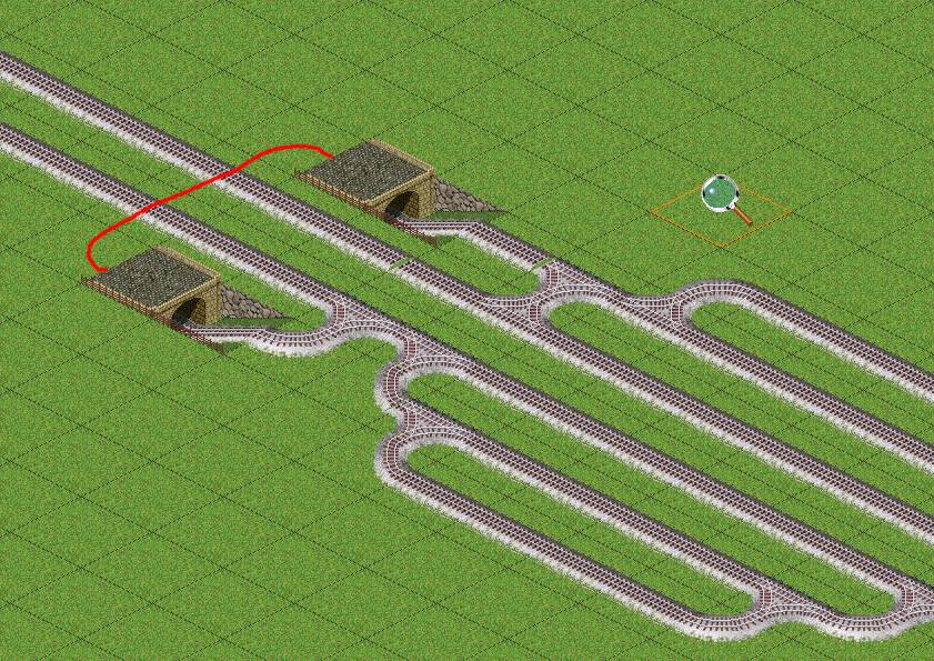 jetzt hab ich jedoch das problem, dass ein zug, welcher bei bahnsteig A hält, statt des tunnels (weg 1) den langezogenen weg 2 verwendet.