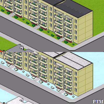 ![]() an dieser stelle wieder ein kleines einfamilienhaus, die bewohner sind gern abgeschirmt von den nachbarn dank der solarunterstützung auf dem dach, ist die simuwelt wieder etwas sauberer geworden