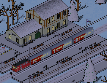 Ein verschneiter österreichscher Bahnhof in den Alpen. Anscheinend ist jedoch Stromausfall, ansonsten hätte die ÖBB wohl keine 2050 vor den im 2 Stundentakt verkehrenden CityShuttle gesetzt.