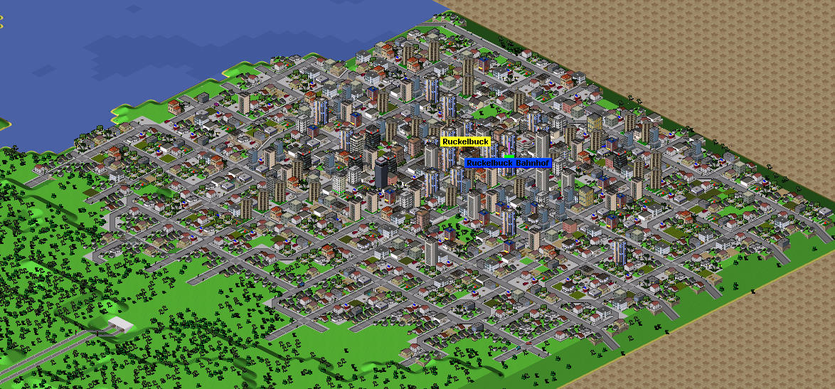 Kleines Suchbild: Wer findet die 4 Tempel? ![]() Die Stadt ist komplett künstlich erbaut, deswegen auch das Raster-Muster mit 4 Straßen... D.h. ich habe die Straßen angelegt, Stadt gegründet, eine Reihe Häuser an die Straßen gebaut sodass keine neuen entstehen und dann den Button für "Einwohnerzahl erhöhen" malträtiert... Diesmal auch ein garantiert werbefreier Speicherort ![]() ![]() Ach ja, fast vergessen zu fragen: Gibt es in der nächsten pak96.comic-Version ein schnelles, hoch-kapazitäres (sagt man das so?) Vehikel (Maglev, Flugzeug; noch schnellere/kapazitäre Züge als die NoSes)? Davon hängt nämlich ab, welche Städte ich als nächstes anbinde... ![]() EDIT: Musste leider rauszoomen, sonst wäre die Stadt nicht ganz draufgekommen...